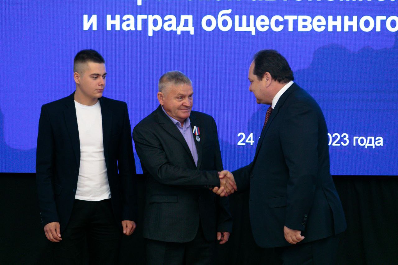 Во Владимирской области состоялось вручение медали «Отец солдата» Торжественная церемония вручения медали «Отец солдата» прошла в Муромском городском театре. Награду общественного признания получил Вячеслав Владимирович Волков. Вместе с супругой Натальей он воспитал сына Антона, военнослужащий героически погиб на СВО. Посмертно он был награждён Орденом Мужества.