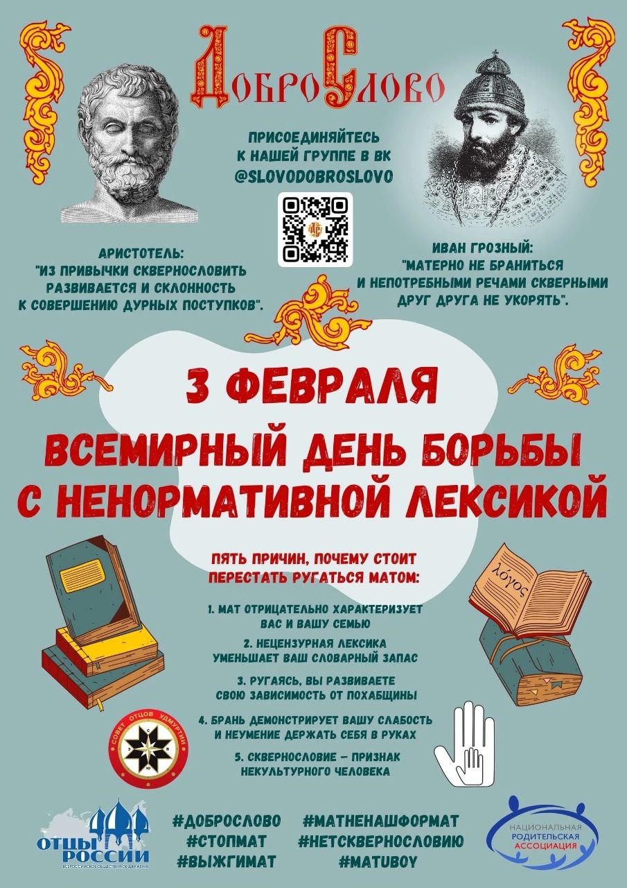 Слово Стартовала неделя «ДОБРОСЛОВИЯ» 3 февраля – день борьбы с нецензурной лексикой.