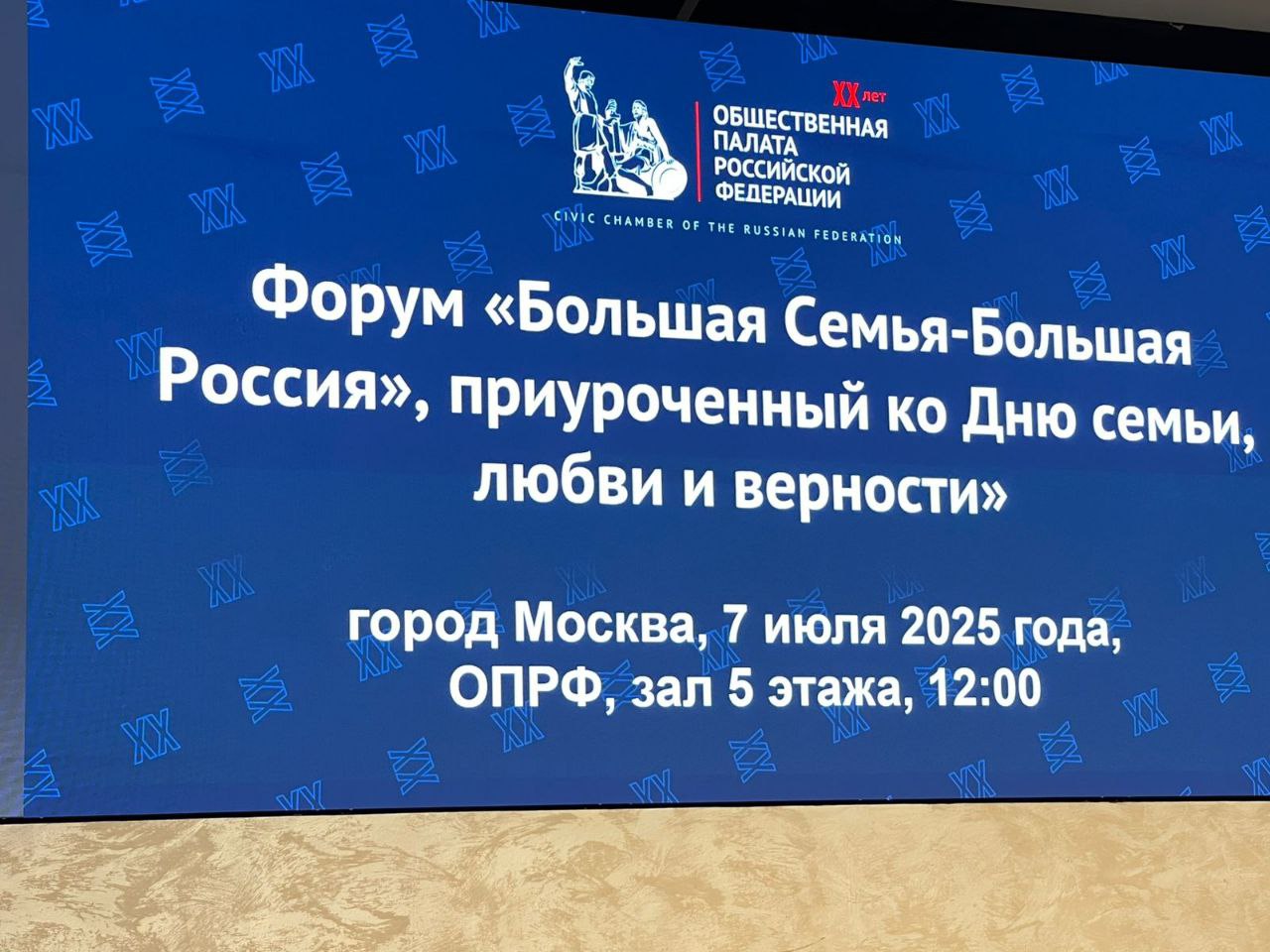 «Большая семья — большая Россия» Председатель отделения ВОД «Отцы России» в Республике Мордовии Максим Захаров на этой неделе принял участие в форуме «Большая семья — Большая Россия», посвящённом Дню семьи, любви и верности. Мероприятие состоялось в Общественной палате РФ.