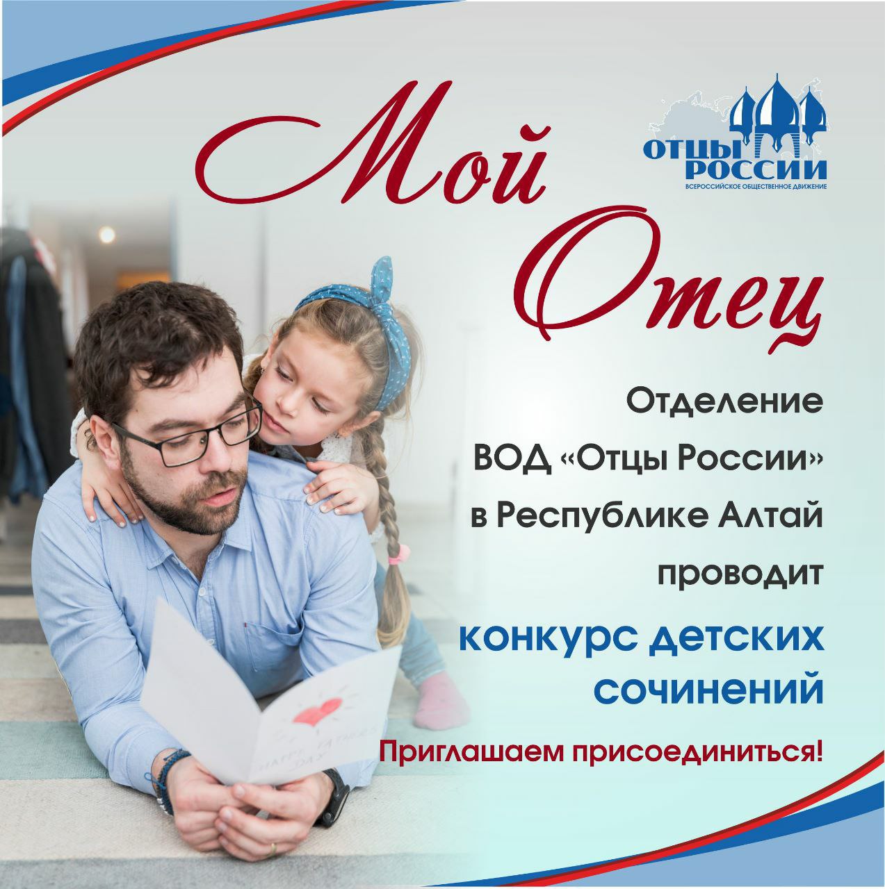 «Мой отец» - конкурс сочинений проводят отцы Республики Алтай Совет отцов Республики Алтай вместе с коллегами из историко-родословного объединения «Тазыл-тамыр» («Моя родословная»), муниципальными библиотеками и редакцией газеты «Звезда Алтая» проводят ежегодный Республиканский конкурс детских сочинений «Мой отец». Итоги конкурса будут подведены ко Дню защитника Отечества.