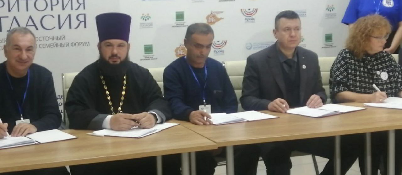 В регионах проходят первые праздничные мероприятия, посвященные Дню отца В Еврейской автономной области состоялся Первый Дальневосточный этно-конфессиональный семейный форум «Территория согласия». Председатель ВОД «Отцы России» Алинберг Ганапольский принял участие в форуме, посвященном Дню отца, и подписании многостороннего соглашения «О межконфессиональном взаимодействии и пропаганде традиционных семейных ценностей».