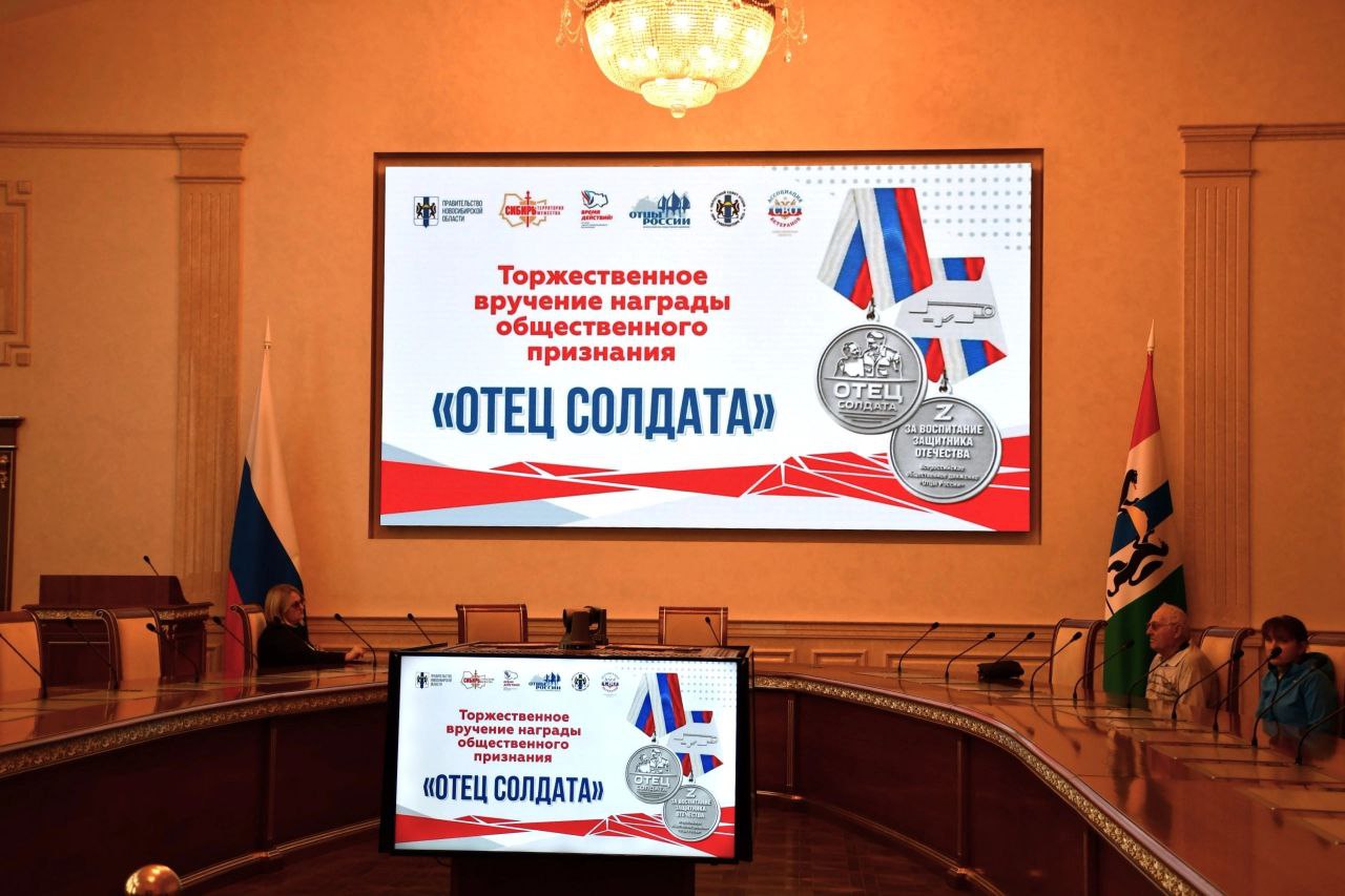 В правительстве Новосибирской области вручили медали «Отец солдата» В малом зале Правительства Новосибирской области состоялась торжественная церемония вручения медали общественного признания «Отец солдата».