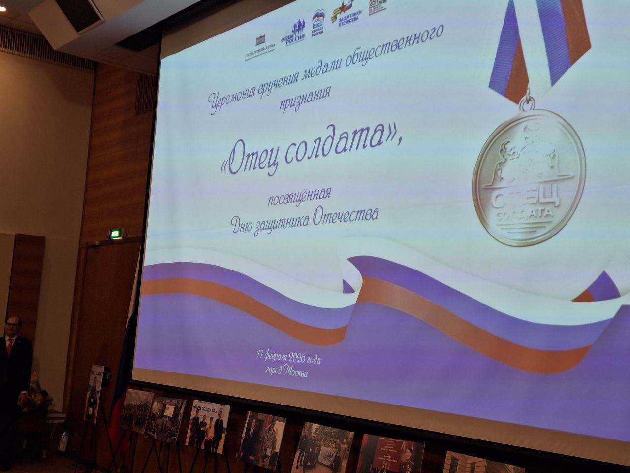 В Москве состоялась торжественная церемония вручения медалей «Отец солдата» В малом зале Государственной Думы Федерального Собрания Российской Федерации состоялась торжественная церемония вручения медалей общественного признания «Отец солдата», посвященная Дню защитника Отечества.