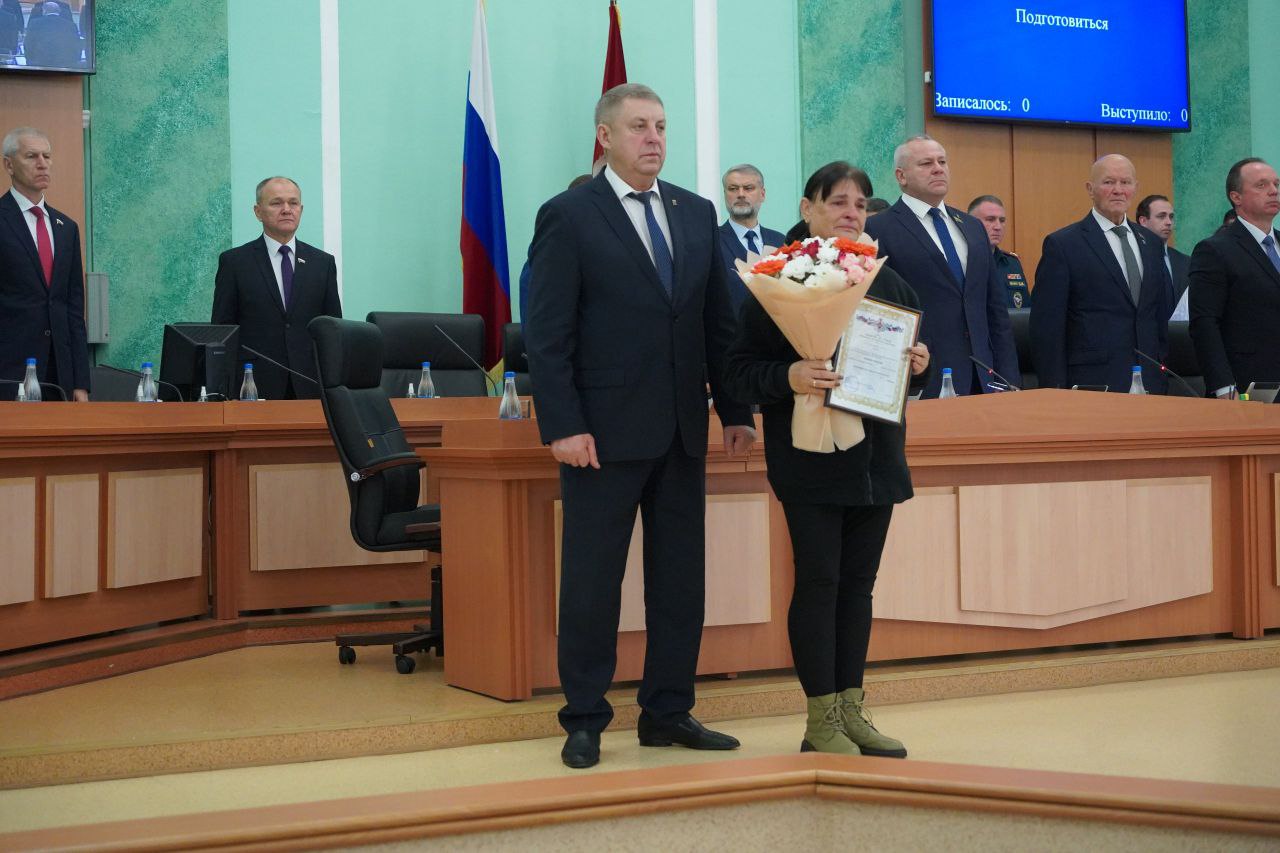 На заседании Брянской областной Думы вручил родным наших Героев, отдавших жизни за свободу и независимость нашей Родины, государственные награды. За мужество, отвагу и самоотверженность, проявленные при исполнении воинского долга, орденом Мужества посмертно награждены Александр Сергеевич Байдак, Александр Александрович Зубарь, Николай Михайлович Король, Илья Александрович Сиваков, медалью «За храбрость» II степени — Игорь Владимирович Пронин.