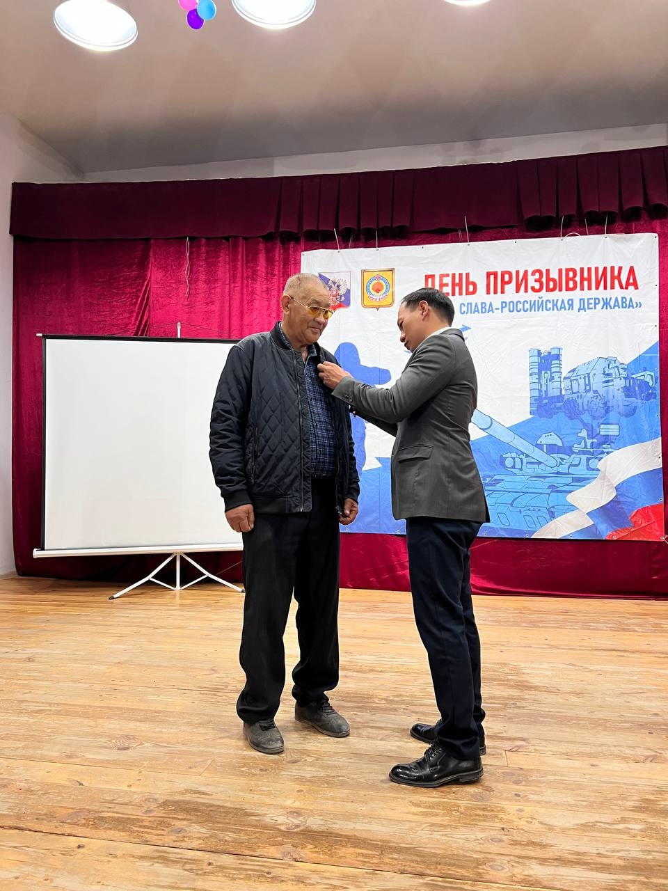 Сегодня в Октябрьском районе медаль общественного признания «Отец солдата» вручили Валерию Дорджиеву. Награду передал глава РМО Басанг Убушаев. Дорджиев - отец военнослужащего, мужественно исполнившего свой воинский и гражданский долг.
