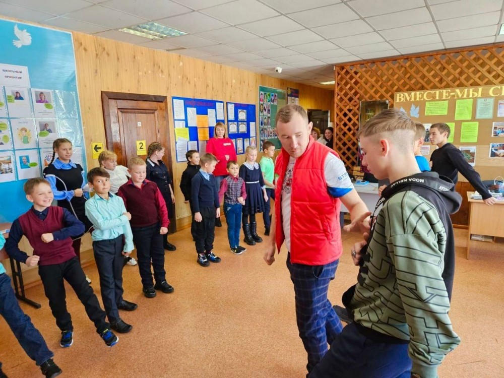 Председатель Совета отцов Сергей Бурков совместно со специалистом по профилактике наркомании районной администрации и представителями «Движение первых» провели в Тимошинской школе профилактический квиз «Сеть». А в рамках проекта «Хранители истории» для ребят состоялось занятие по строевой подготовке. Ребятам показали строевой шаг, а затем они отработали вынос Государственного флага Российской Федерации в группах по три человека.