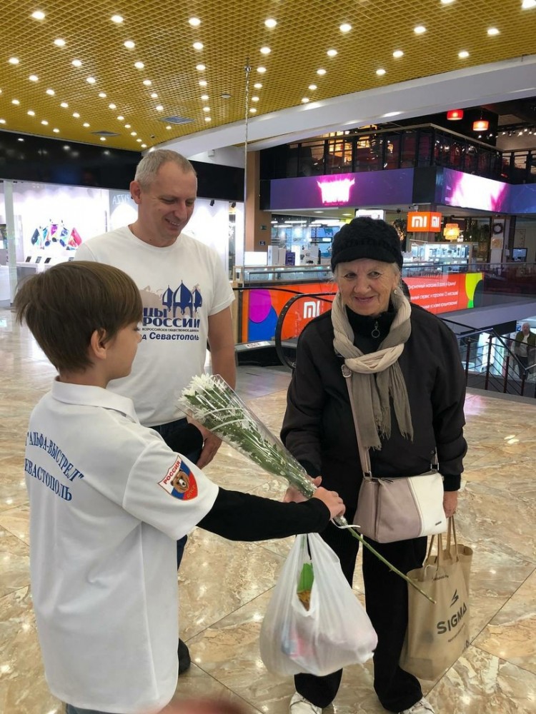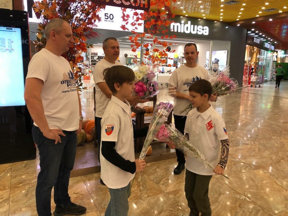 Севастопольские отцы вместе с юными спортсменами подшефного спортивного клуба «Альфа-Выстрел» поздравили мам с праздником в одном из торговых центров города, а также женщин из благотворительного фонда «Круговорот Добра».