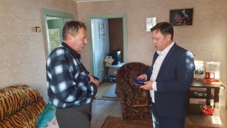 Во время своей последней командировки по районам области приехал в село Унгун Ленинского района к Павлу Петровичу Мискевичу, чтобы лично вручить ему медаль «Отец солдата» за достойное воспитание сына Алексея, защитника Отечества.