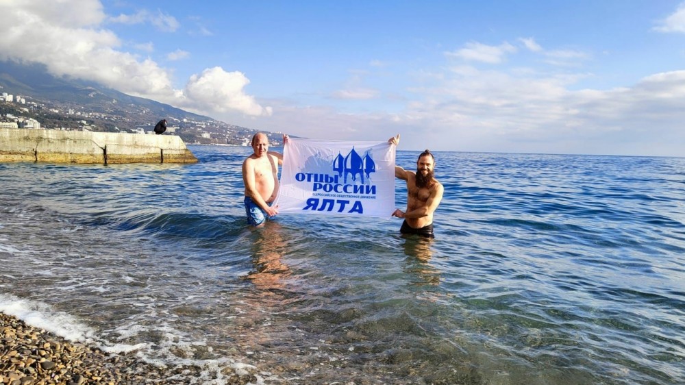 А отцы Ялты свой пробег трезвости продолжили купанием в новогоднем море. Закаляйся, если хочешь быть здоров.