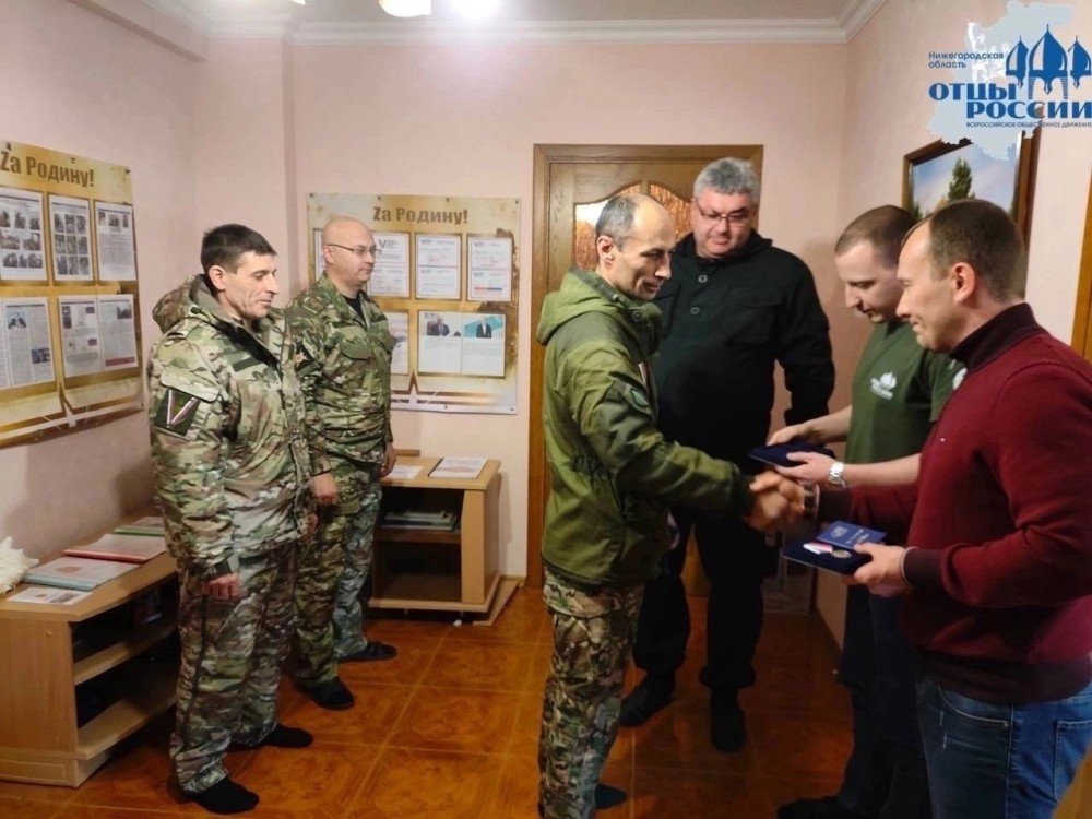 Активисты отделения ВОД «Отцы России» в Нижегородской области в эти дни работают в новых регионах России и за ленточкой. Отцы выехали по поручению Председателя Правления отцовского движения Андрея Коченова, чтобы вручить очередные медали «Отец солдата» «За воспитание защитника Отечества и личный пример». Напомним, на передовой мы вручаем награды общественного признания тем отцам, которые служат в зоне СВО вместе со своими взрослыми сыновьями.