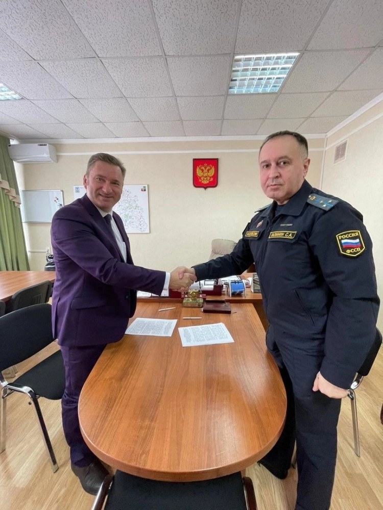 Председатель РО ВОД «Отцы России» в Белгородской области Александр Косов и заместитель начальника отделения специального назначения ФССП России по Белгородской области Сергей Калинин договорились о совместной работе в проектах патриотического воспитания молодежи, популяризации традиционных семейных ценностей, поддержке семей военнослужащих, находящихся в зоне СВО.