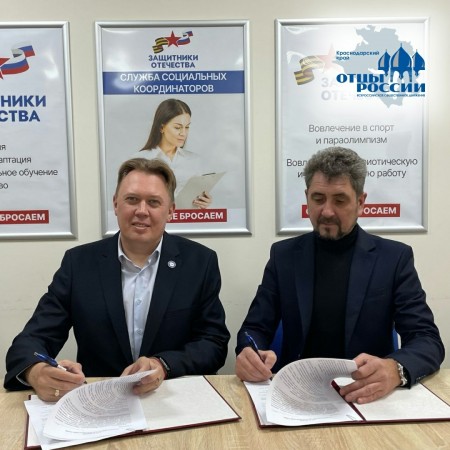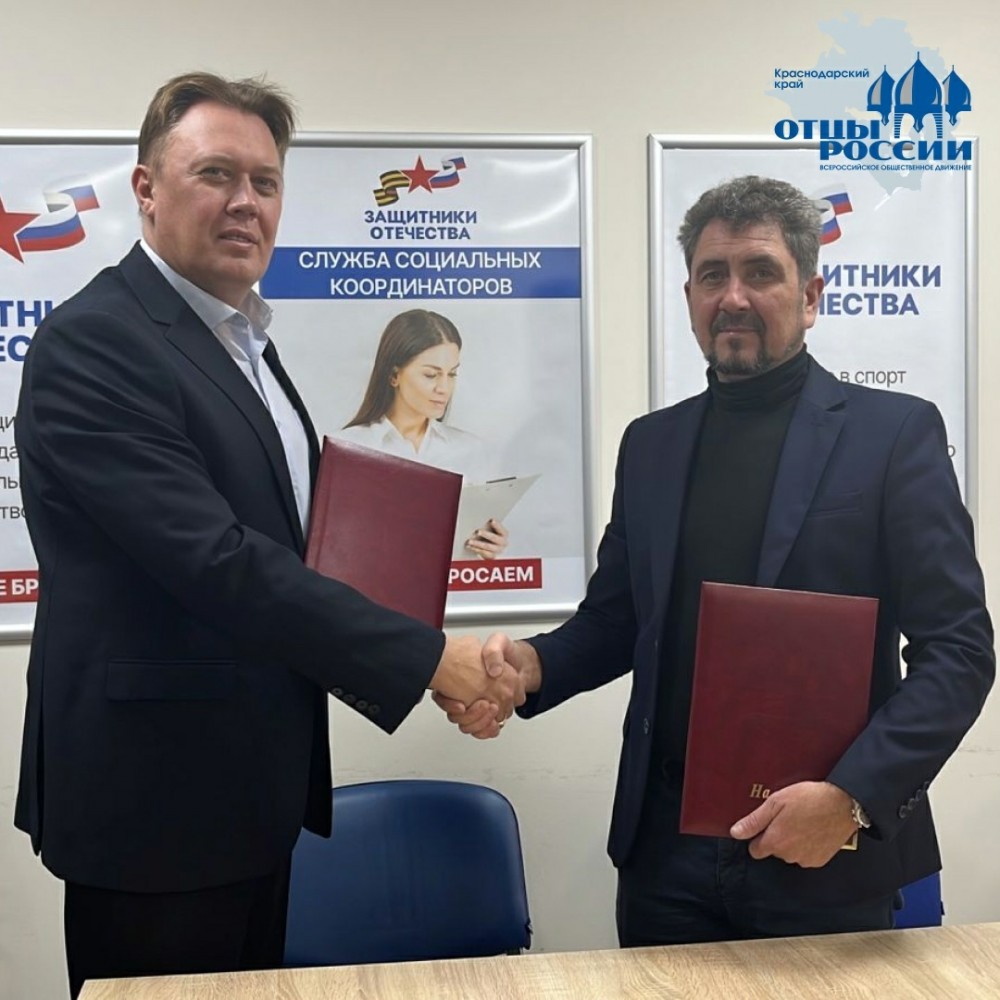 Вчера руководитель филиала фонда «Защитники Отечества» в Краснодарском крае Александр Старовойтов и председатель местного отделения ВОД «Отцы России» Павел Ерагер подписали официальный документ о взаимодействии.