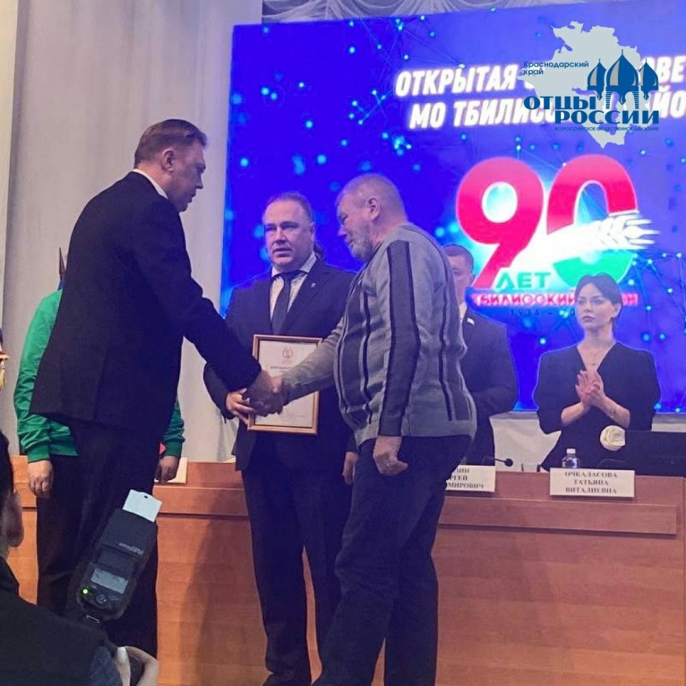 Сегодня на открытой сессии совета МО Тбилисского района представители регионального отделения ВОД «Отцы России» в Краснодарском крае совместно с координатором штаба Комитета Семей Войнов Отечества в регионе Надеждой Бойко вручили очередную награду общественного признания «Отец солдата».