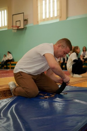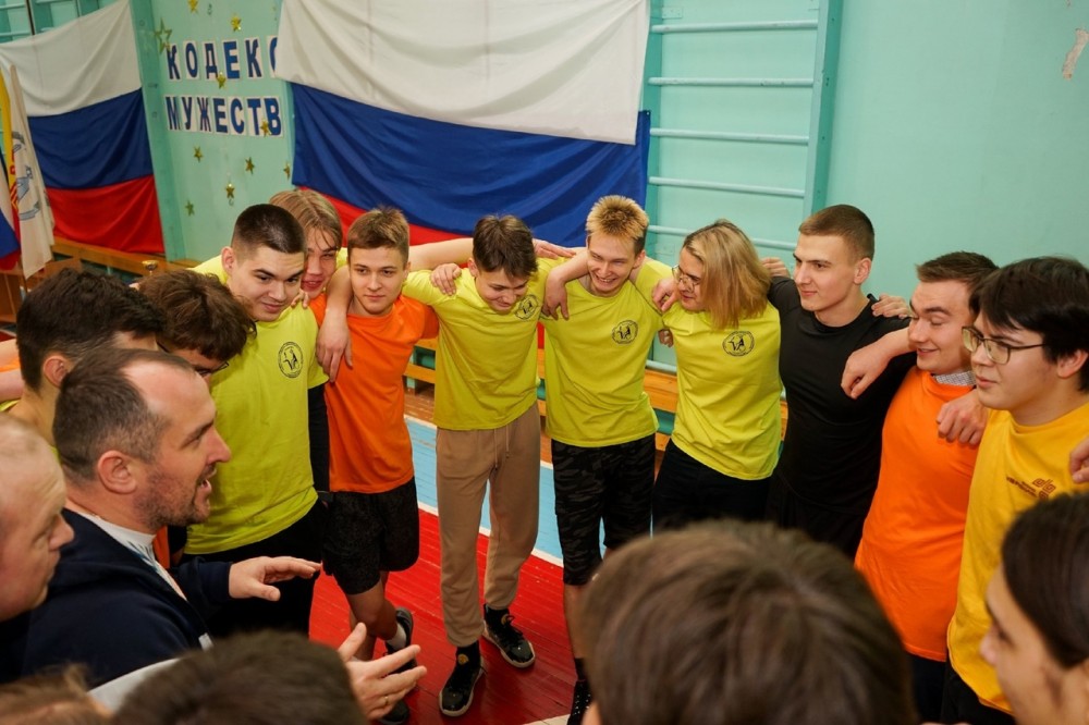 Друг с другом посоревновались команды Совета отцов и учеников 11 класса. Они собирали автомат, примеряли противогаз, показывали силу, скорость и ловкость. Отцы и ребята успешно прошли все испытания. А в конце мероприятия родители вручили каждому юноше Кодекс мужчины и отца.