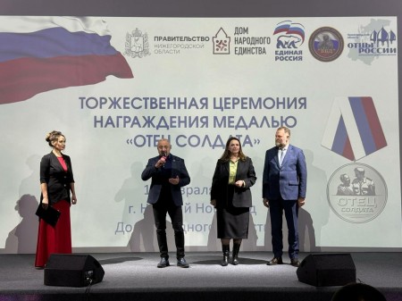 Вчера в Доме народного единства Нижнего Новгорода открылся форум семей участников СВО «Слава Героям России». Первым мероприятием форума стало торжественное вручение медалей «Отец солдата» – награды, учрежденной Всероссийским общественным движением «Отцы России» 9 мая 2023 года.