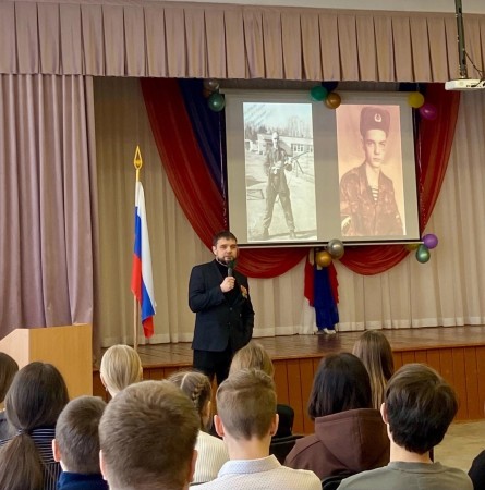 Темой разговора стал героизм наших отцов и дедов, понятия долг, честь, мужество. Встреча получилась трогательной, а самое главное – честной. Евгений Витальевич немного рассказал о себе, поделился историями о службе в армии. Рассказал об отряде специального назначения «Витязь», где проходил службу в 1994-1996 годах, и особенностях подготовки солдат данного рода войск.