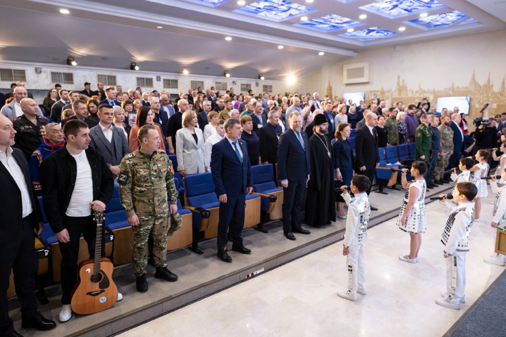 Первым награждаемым стал Артём Жога, председатель Народного Совета ДНР, отец Героя России и Героя ДНР. Артём Владимирович поблагодарил всех за память о воинах и выразил надежду, что в Год семьи все парни, которые несут сегодня вахту на передовой, вернутся домой и окажутся в кругу семьи.