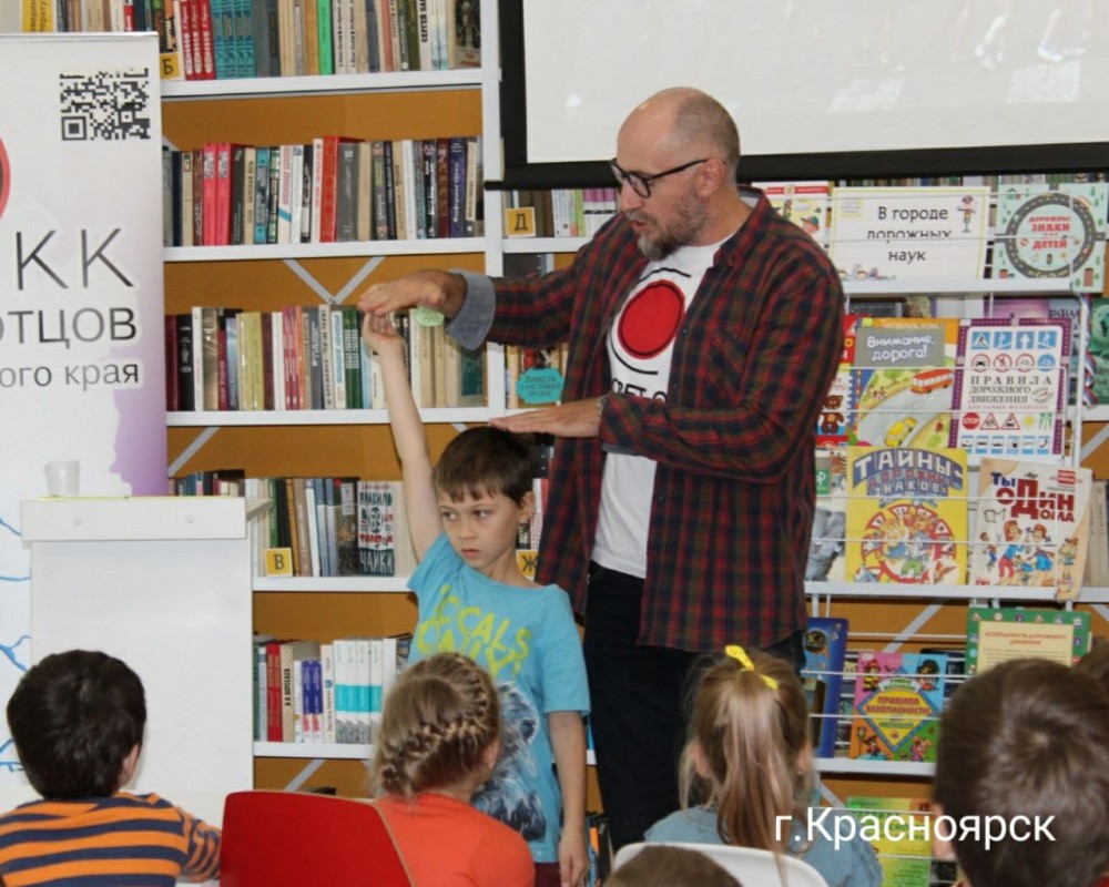 Сегодня Председатель отделения ВОД «Отцы России» в Красноярском крае Олег Окладников провел занятие по дорожной безопасности для дошколят старшей группы в городской детской библиотеке им. С.В. Михалкова.