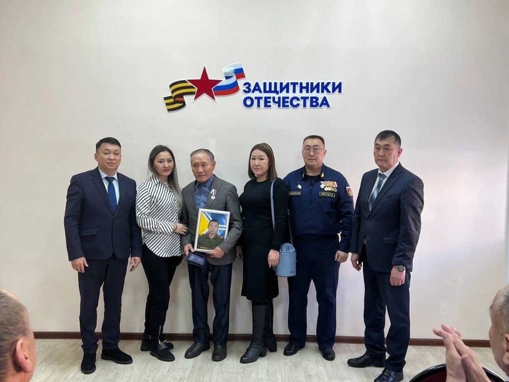 А через несколько дней награждение впервые состоялось в самой Республике. Торжественная церемония прошла в филиале фонда «Защитники Отечества» с участием специального представителя Главы Республики Тыва по вопросам СВО Тимура Борисовича Куулара и Кызыл-оола Мергена Михайловича, руководителя филиала фонда в Тыве.