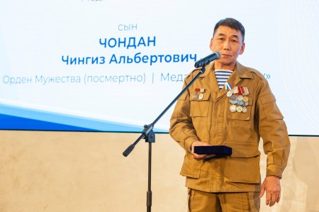 На прошлой неделе в Москве, в Общественной палате РФ, состоялось торжественное вручение медалей «Отец солдата». Среди награждаемых был и отец из Тывы. Чондан Альберт Тогжуевич – участник войны в Афганистане, ветеран «Боевого братства». Его сын Чингиз героически погиб в ходе выполнения задач специальной военной операции. Молодой человек посмертно получил Орден Мужества.