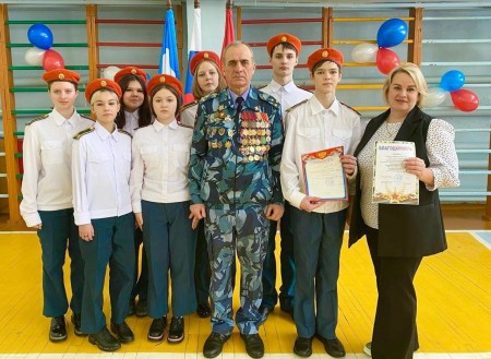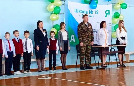 В спортивном зале школы прошел «Смотр песни и строя». Школьники показали элементы военного приветствия, строевые навыки и исполнили строевые песни. А после конкурсных испытаний гости провели для ребят урок мужества и рассказали ученикам про героизм наших солдат, любовь к Родине, памятные даты в России, про уважение к старшему поколению и родителям.