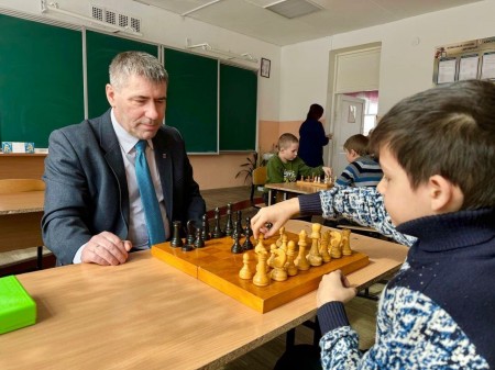 Максим Петров сыграл партию с одним из участников соревнований. Юный соперник показал хорошую игру, но обыграть опытного отца не смог.