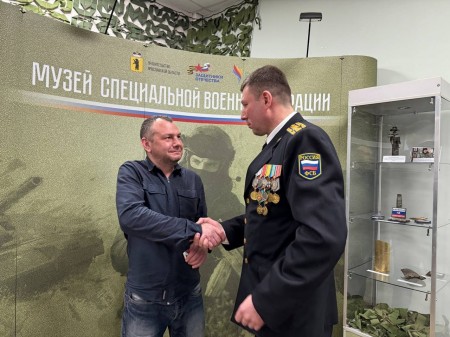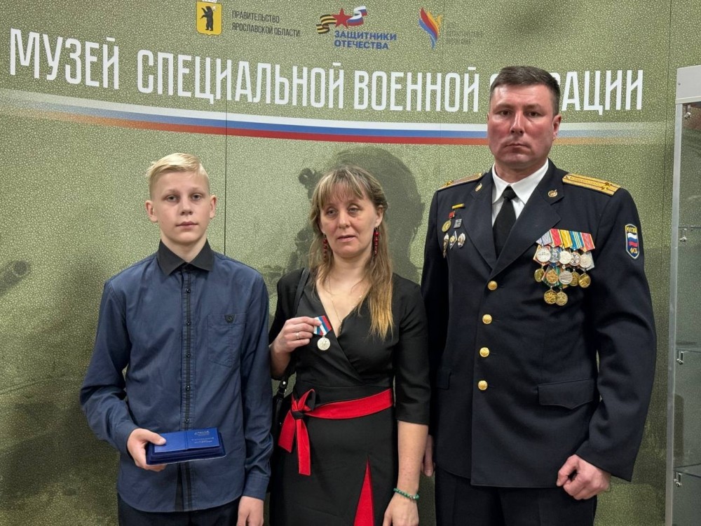 На базе музея СВО в фонде «Защитники Отечества» в Ярославской области сегодня состоялось вручение медали общественного признания «Отец солдата». Медали вручил Сергей Аверкин, подполковник, заместитель командира воинской части, активист ярославского отделения и боевой офицер.