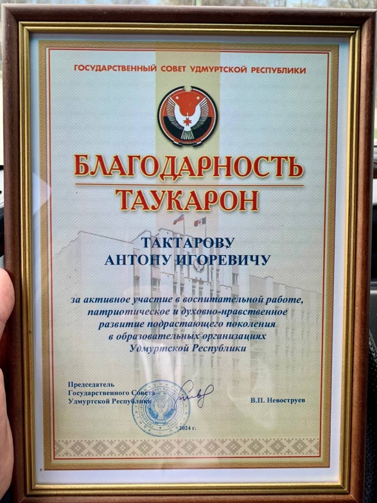 В завершении форума педагогам и представителям родительского сообщества вручены Благодарности Председателя Государственного Совета Удмуртской Республики за эффективное патриотическое и духовно-нравственное воспитание подрастающего поколения.