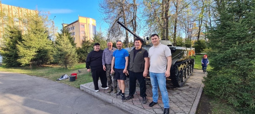 Члены Правления Совета отцов Республики Алтай и Союза десантников подготовили к Параду Победы военную технику на мемореальном комплексе «Парк Победы» в Горно-Алтайске. Участники акции помыли и покрасили боевые машины, почистили территорию.
