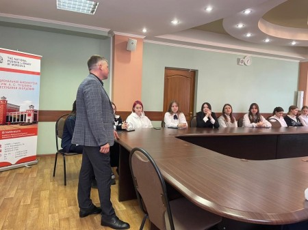Сегодня сотрудники отдела литературы на иностранных языках Национальной библиотеки им. А. С. Пушкина Республики Мордовия пригласили председателя отделения ВОД «Отцы России» в регионе Максима Захарова на беседу с учащимися 9 классов школы № 9.