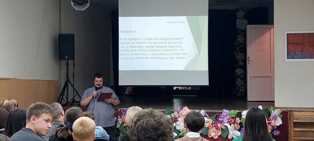 Представители городского Советов отцов организуют открытые уроки на тему «Конфликты» в школах муниципалитета, на которых демонстрируют авторский фильм руководителя Крымского отделения отцовского движения Олега Беккера.