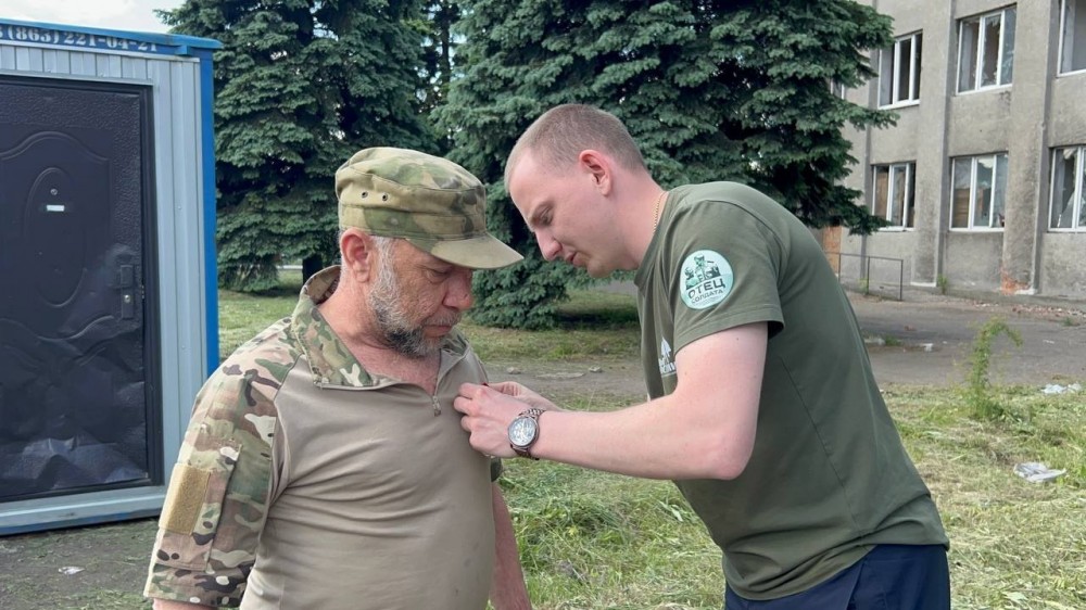 Делегация лидеров Всероссийского общественного движения «Отцы России» во главе с Председателем Правления Андреем Коченовым продолжает вручать медали «Отец солдата» на прифронтовой территории, в расположениях воинских подразделений.