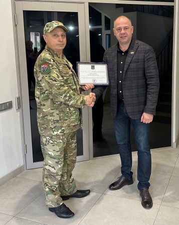 Председатель Владивостокского отделения ВООВ «Боевое братство» Виктор Донец по поручению главы Приморского края Олега Кожемяко вручил Виктору Николаевичу Благодарственное письмо за значительный вклад в реализацию проекта «Дальневосточный герой», поддержку участников специальной военной операции и их семей.