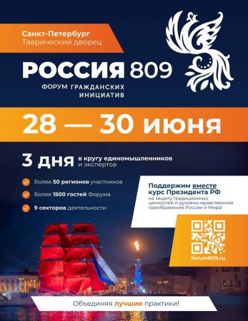 28-30 июня 2024 в Санкт-Петербурге, в Таврическом дворце пройдет Форум гражданских инициатив «Россия 809».