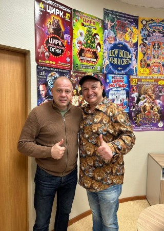 Лидер отцов Приморья Виктор Тарабарин провел встречу с руководителем продюсерского центра Гией Эрадзе и обсудил выделение пригласительных билетов для семей военнослужащих на цирковое шоу.