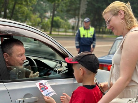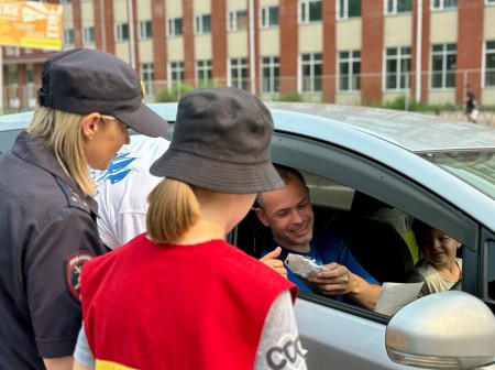 Председатель ВОД «Отцы России» в ЕАО и Координатор партийного проекта «Крепкая Семья» Алинберг Ганапольский вместе с сотрудниками ДПС, представителем аппарата уполномоченного по правам ребёнка в автономии и юными инспекторами дорожного движения останавливали автолюбителей, напоминали правила безопасности, вручали памятку и держатель для телефона.
