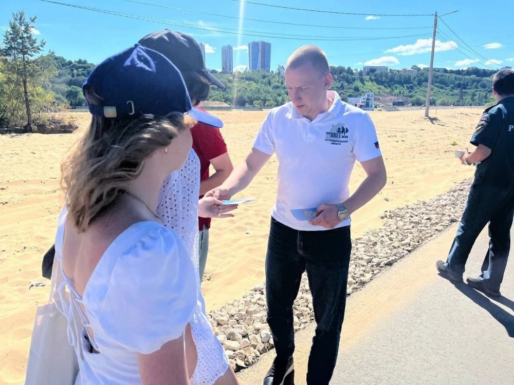 Отцы Нижегородской области совместно с сотрудником ГИМС, представителями Молодой Гвардии и Волонтёрской Роты провели профилактическую беседу на набережной Гребного канала и напомнили о мерах безопасности на водных объектах и в местах массового отдыха!