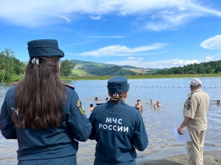 Председатель отделения ВОД «Отцы России» в Республике Алтай Александр Вольф, Уполномоченный по правам ребёнка в регионе Надежда Манзырова, сотрудники МЧС и волонтёры от Общественной палаты Республики Алтай проверили состояние мест купания детей и взрослых в окрестностях Горно-Алтайска.