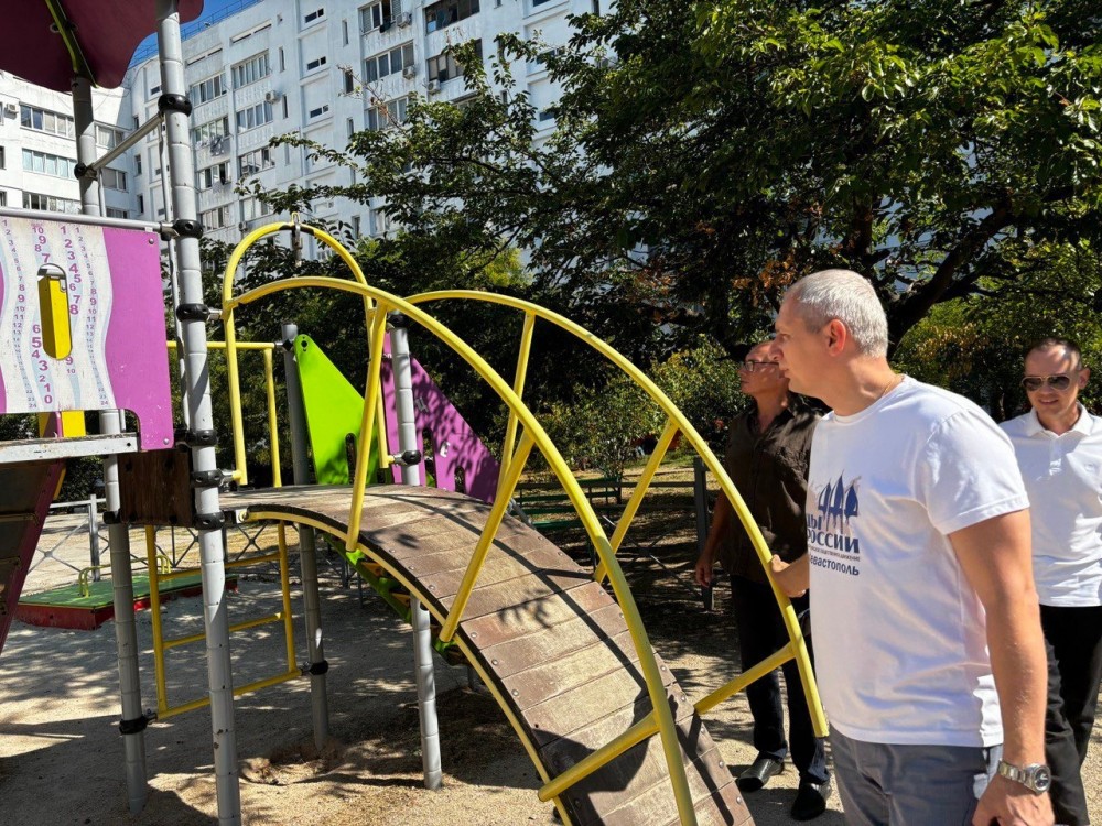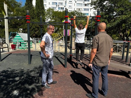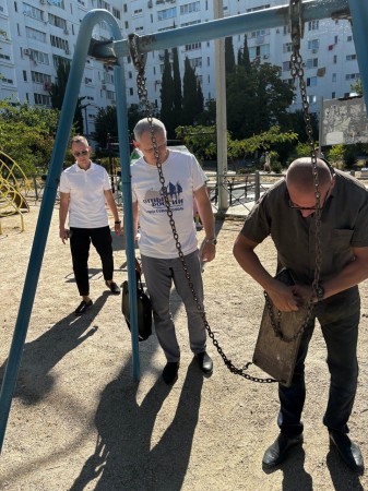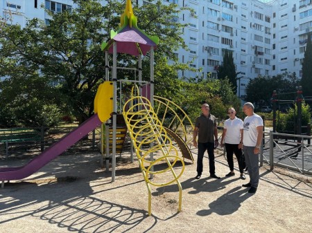 Вчера руководитель регионального отделения ВОД «Отцы России» в Севастополе Виталий Мефаник с активистом движения Николаем Матвеевым и депутатом Совета Гагаринского МО Сергеем Дондуком осмотрели детские площадки Гагаринского района города Севастополя.