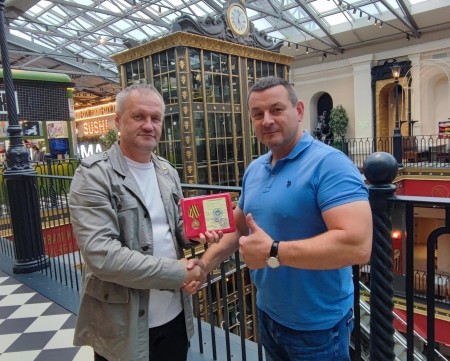 Михаил Александрович также передал Дмитрию Валентиновичу награду «ЗА ВКЛАД В ПОБЕДУ В БОРЬБЕ С УКАИНСКИМ НАЦИЗМОМ ВЕЛИКОРОСС» для его сына Никиты Дмитриевича Карбаинова.
