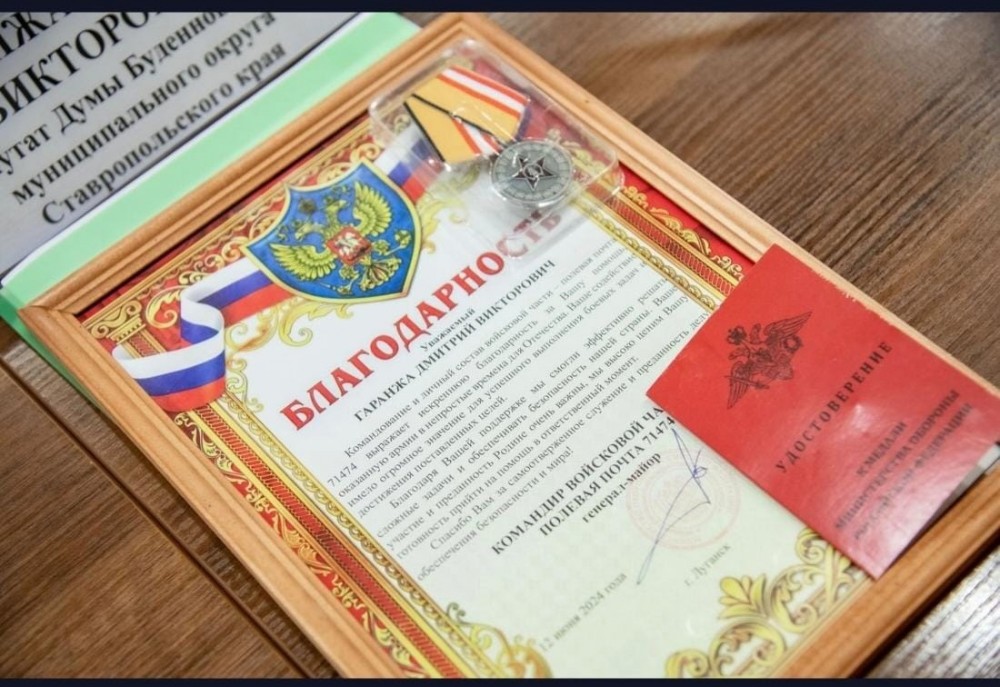 Председатель Совета отцов Буденновского муниципального округа Ставропольского края Дмитрий Гаранжа награжден медалью «Участнику специальной военной операции».