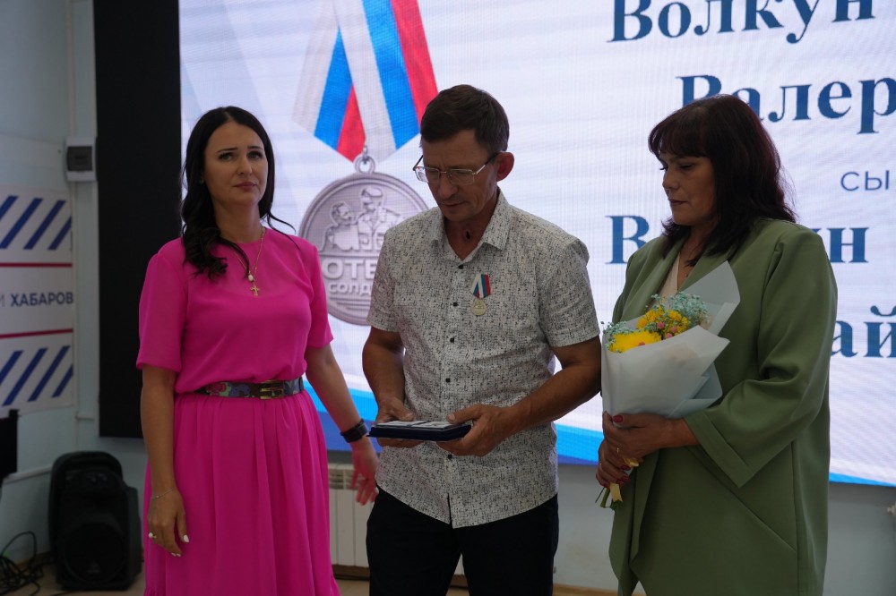 Медали вручили 10 отцам, которые воспитали героев, проявивших особое мужество в ходе специальной военной операции. Награды вручили первый заместитель председателя комитета Государственной Думы Федерального Собрания Российской Федерации по защите семьи, вопросам отцовства, материнства и детства, федеральный координатор партпроекта «Крепкая семья» Татьяна Буцкая, председатель регионального отделения ВОД «Отцы России» в Хабаровском крае Константин Юров и руководитель филиала фонда «Защитники Отечества» в регионе Алёна Чаплыгина.