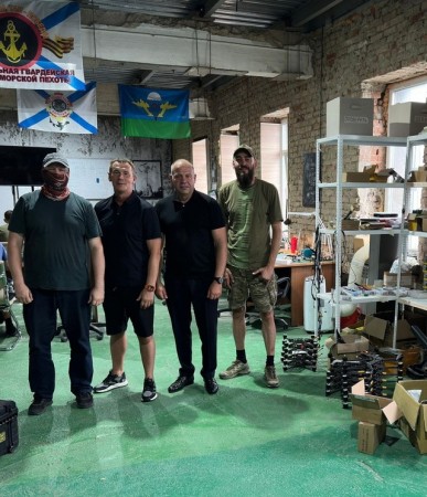 Встреча прошла на территории клуба, где военнослужащие проходят обучение по управлению беспилотными летательными аппаратами перед отправкой в зону боевых действий.