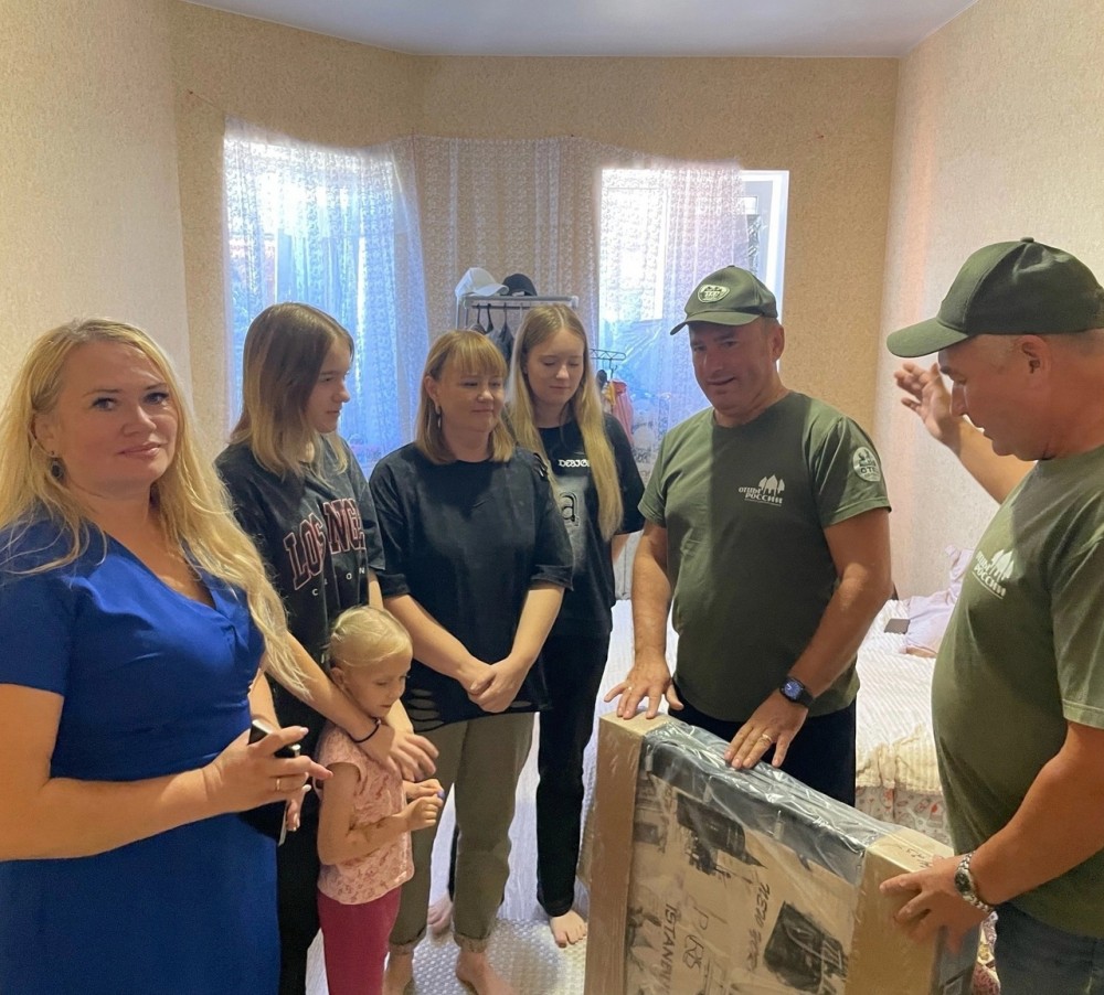 Активисты движения привезли мебель для многодетных семей, которые были вынуждены эвакуироваться, и канцелярию для детей региона — тетради, альбомы для рисования, цветную бумагу, ластики, точилки, чертежные наборы.