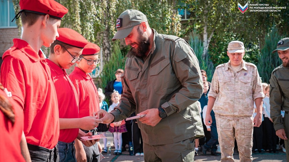 На днях бойцы-добровольцы приняли участие в торжественном посвящении Юнармейцев новообразованного отряда в в одной из школ Мелитопольского района. Ребята приняли присягу, им вручили удостоверения и значки юнармейцев.