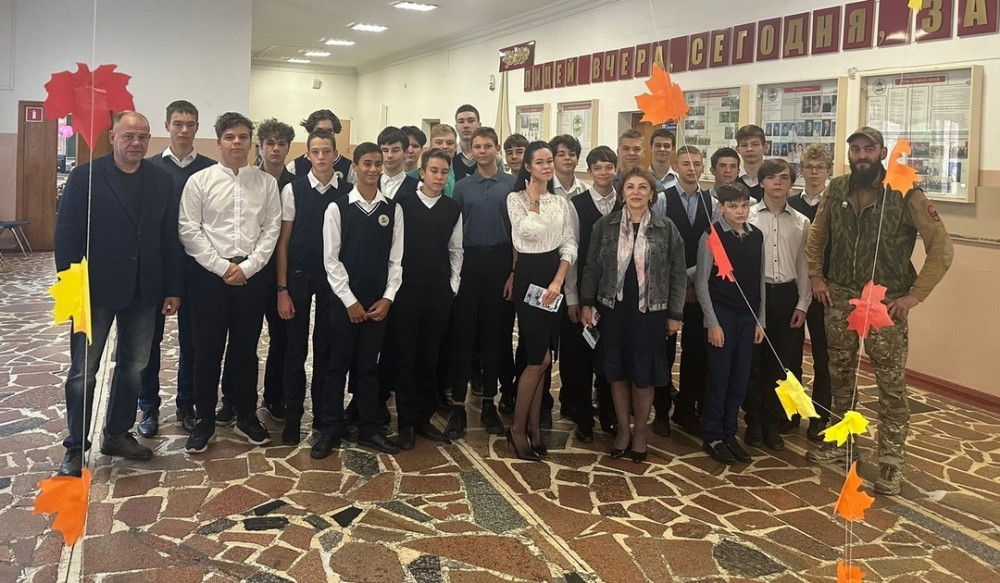 Виктор Тарабарин и Вячеслав Бедных рассказали молодым людям о целях и задачах специальной военной операции на Украине, напутствовали ребят любить и защищать Родину, а также ответили на многочисленные вопросы лицеистов.