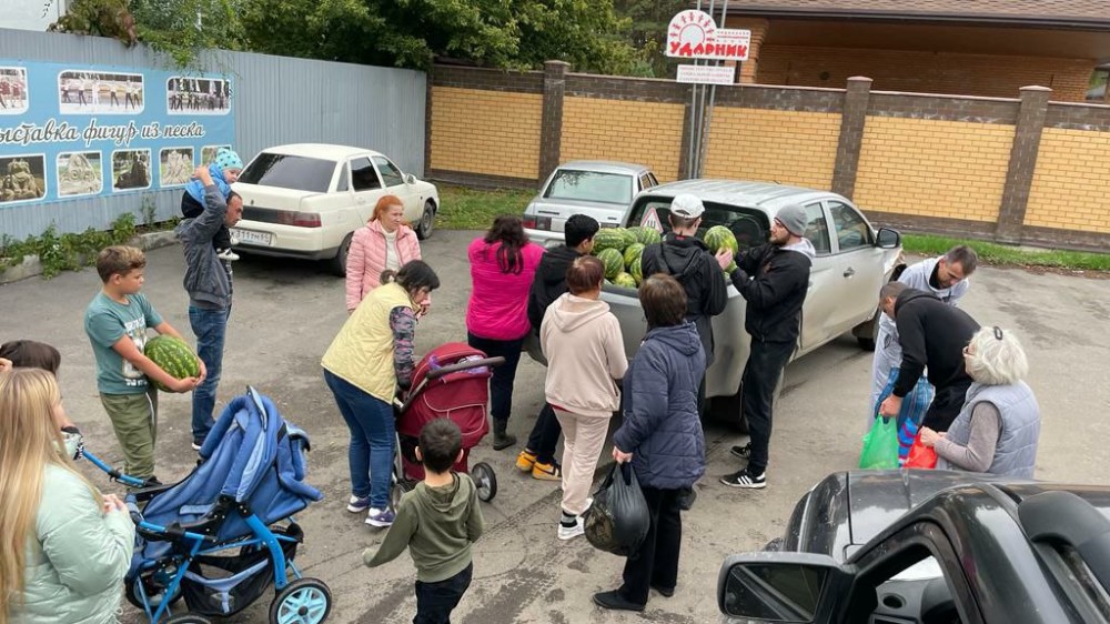 ВОД «Отцы России» в Саратовской области вместе с партнерской организацией волонтёров «Дари добро» доставили арбузы во временные пункты размещения беженцев из ДНР и ЛНР в регионе.
