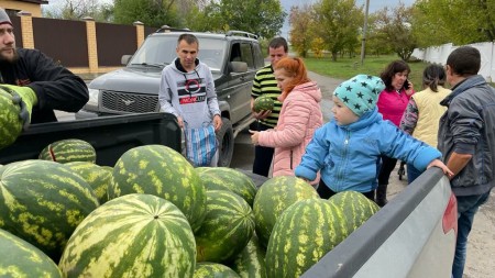 Четыре автомобиля арбузов отцы с волонтерами привезли в пункты «Ударник», «Покровский», «Сокол». Арбузы также адресно завезли семье, где воспитывается ребенок с ОВЗ.
