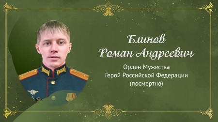 Роман Андреевич Блинов в июне 2023-го возглавил мотострелковый полк, который отражал атаку противника в лесополосе у села Нескучное. Подразделение Романа Блинова уничтожило два взвода противника, включая командование и захватило секретные документы, которые помогли узнать о дальнейших планах противника. Но старший лейтенант Роман Блинов скончался, получив осколочное ранение.