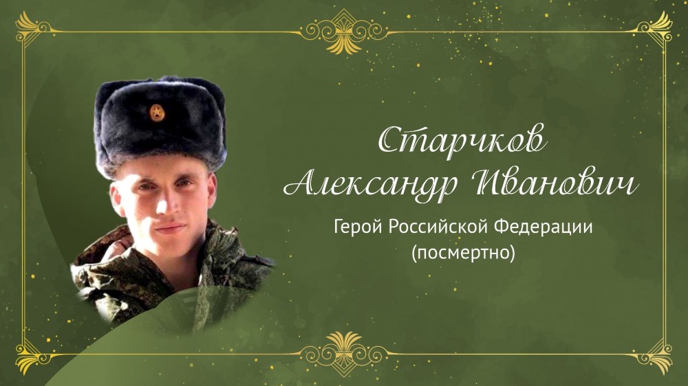 Александр Иванович Старчков с первого дня СВО занимал должность разведчика-пулемётчика. В апреле 2022 года в районе поселка Диброво первым увидел противника, оповестил командира группы и открыл по врагу огонь. Рядовой Старчков, маневрируя на местности, огнем из пулемета пресек попытки окружения, а остатком боекомплекта начал имитировать атаки, отвлек на себя противника и дал возможность раненым товарищам выйти из боя. Прикрывая группу, Александр Иванович Старчков сосредоточил на себе весь огонь врага и героически погиб.